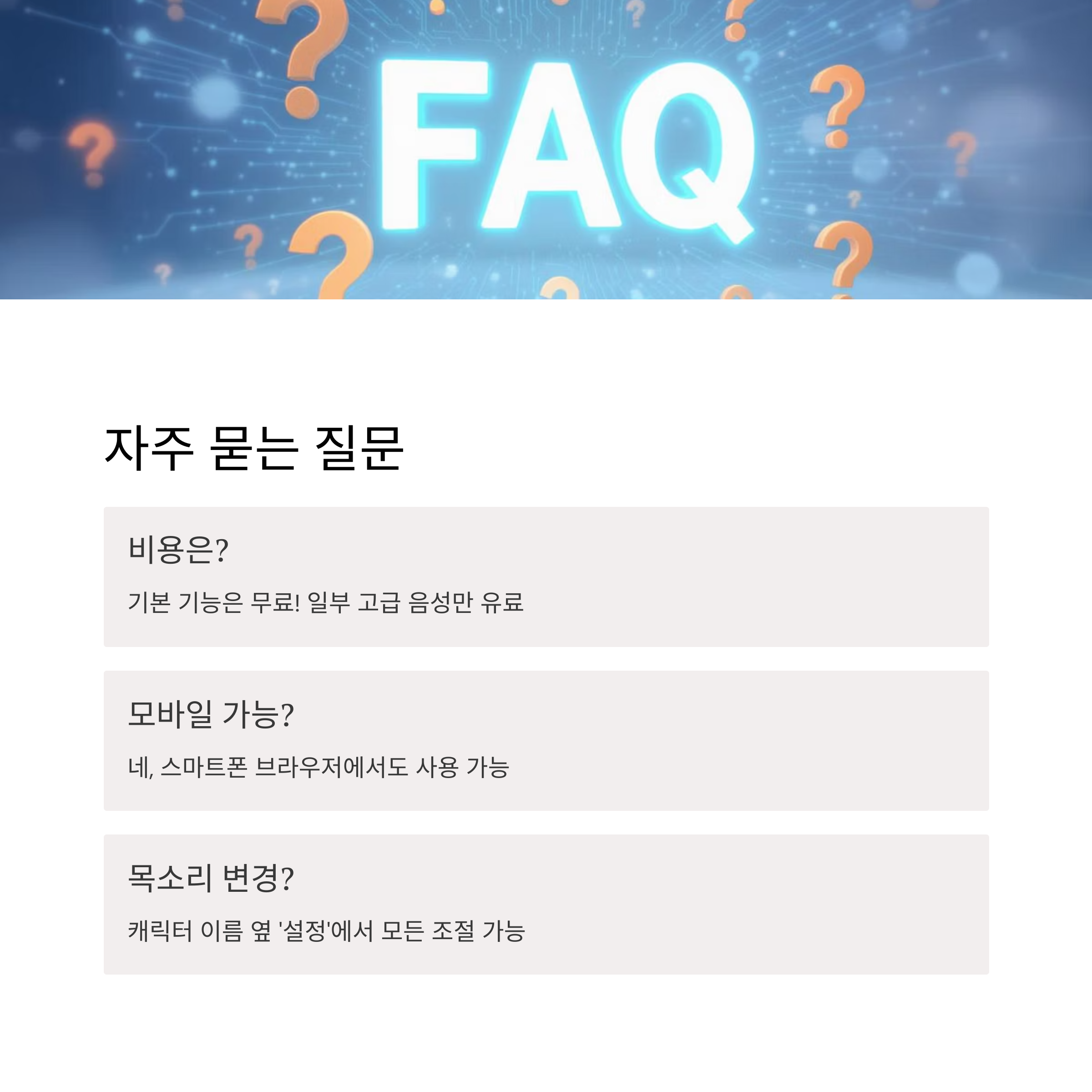 A: 일부 목소리는 무료, 고급 음성은 유료예요. 기본 기능은 무료로 충분히 가능해요.